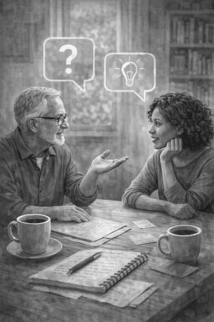 It encourages curiosity, reflection and learning through dialogue,